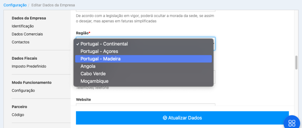 Caso não veja a sua taxa de iva, verifique por favor qual a Região que configurou nos dados da conta no Vendus. Para utilizar o IVA da Madeira, por exemplo, deverá seleccionar a Região Madeira.