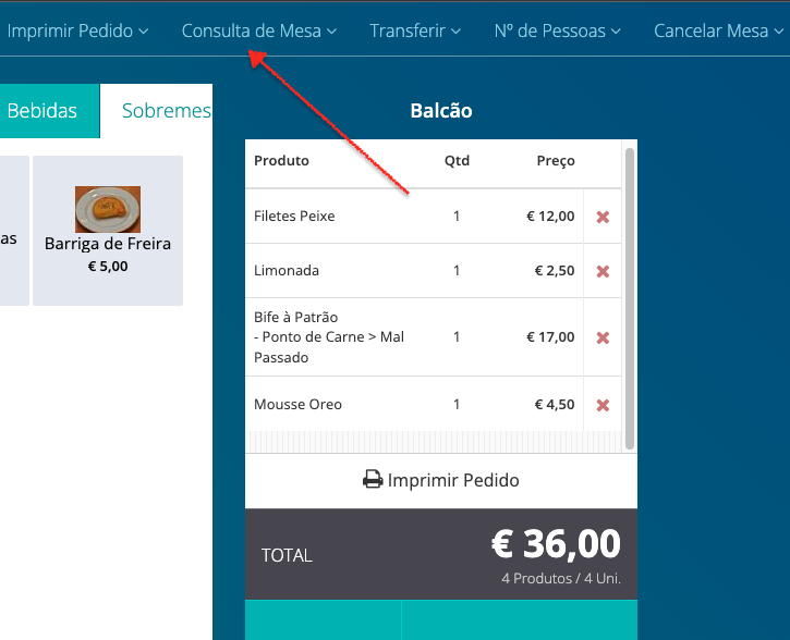 Para a emitir, basta abrir a mesa pretendida e em cima do lado direito conseguirá visualizar a opção.