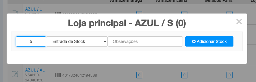 - Poderá atualizar o stock para esta variação e loja específica;