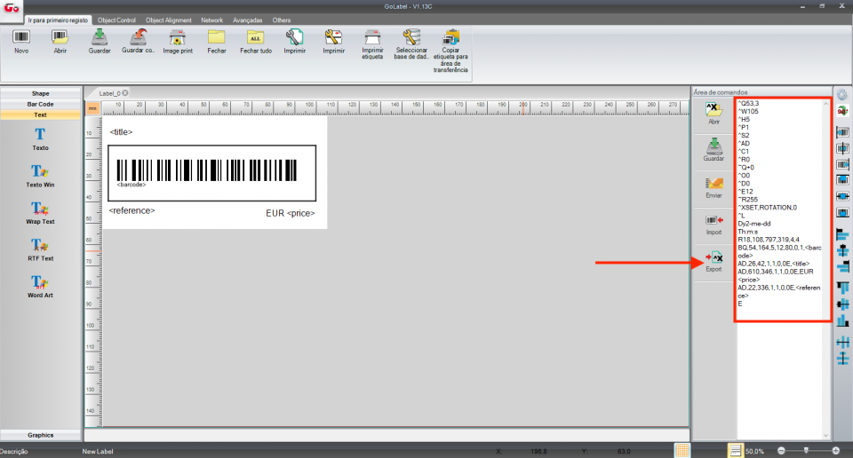 Na imagem seguinte, foi utilizado o GoLabel da marca Godex.