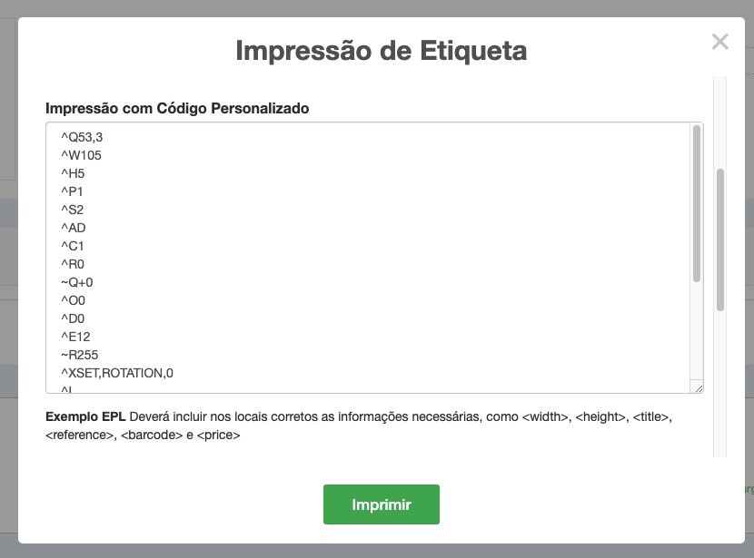 Atenção: Deverá incluir nos locais corretos as informações necessárias, como <title>, <reference>, <barcode> e <price>. Opcionalmente, <width>, <height> e <gap-between>. Estas informações serão substituídas pelas informações de cada produto.