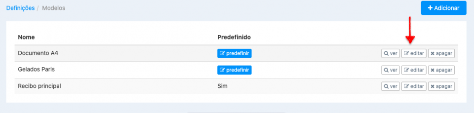 Diriga-se a Configuração > Definições > Modelos e clique em Editar no modelo pretendido.