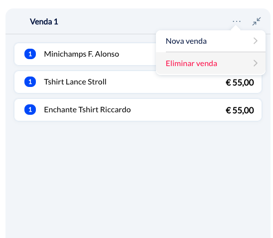 Para cancelar uma venda, basta clicar nas reticências do ecrã da venda, do lado direito, e verá a respectiva opção.