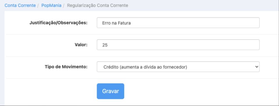 -Na conta corrente do fornecedor, encontra um botão chamado Regularizar. Clicando no mesmo pode registar movimentos, sem valor fiscal, que permitem modificar de forma simples o valor que deve ao fornecedor ou o valor que o fornecedor deve à sua empresa.