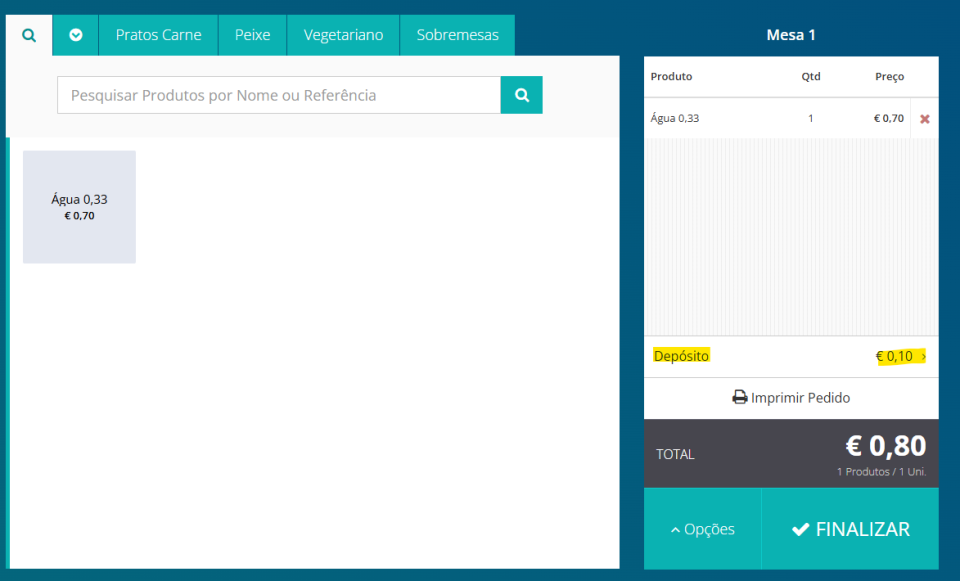 No POS, ao adicionar o produto com o depósito, será apresentado o valor no final da venda: